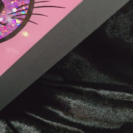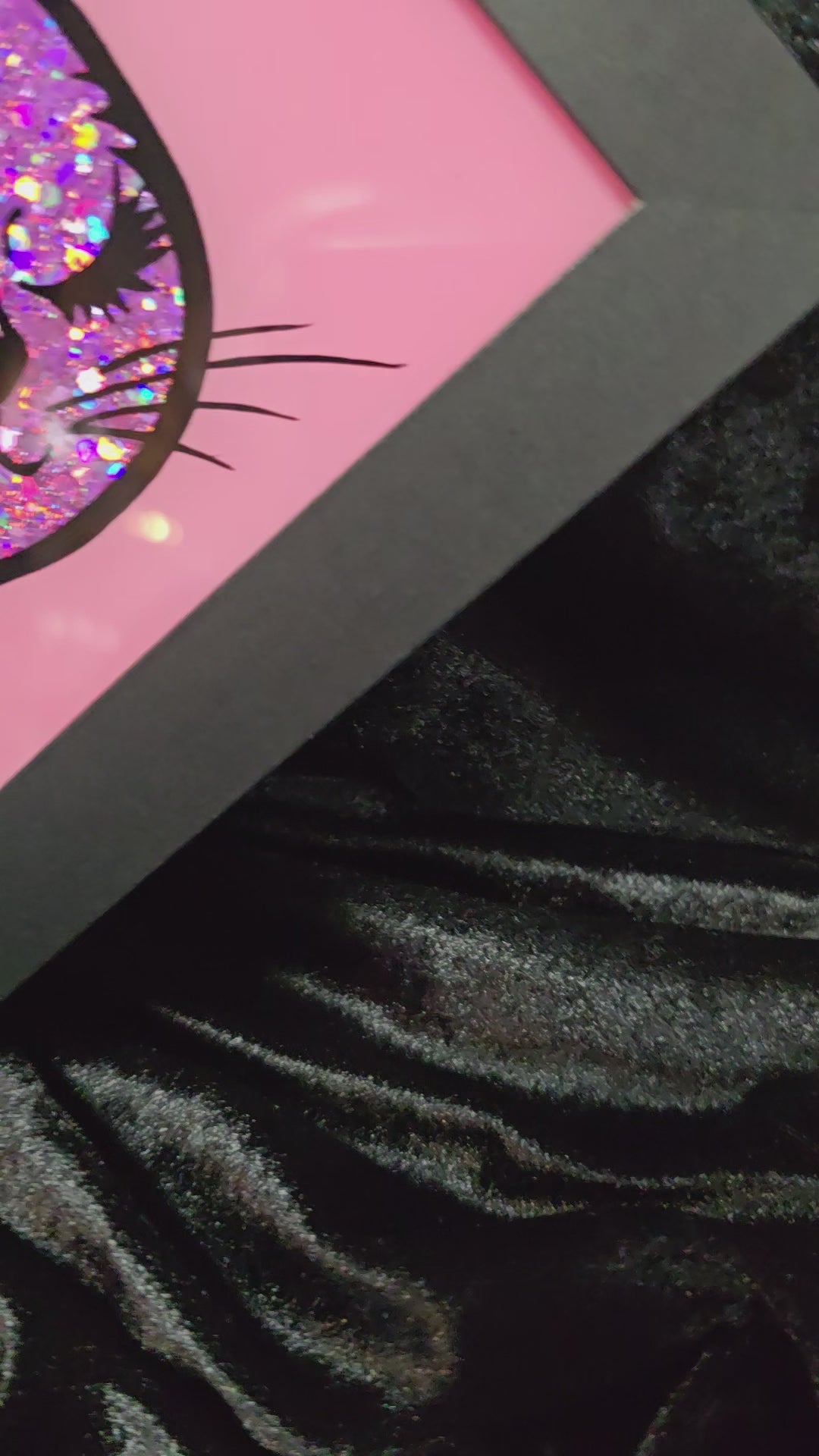 Each piece is hand painted by me, signed and backed with black velvet. Enamel on glass 6x6 black frame.