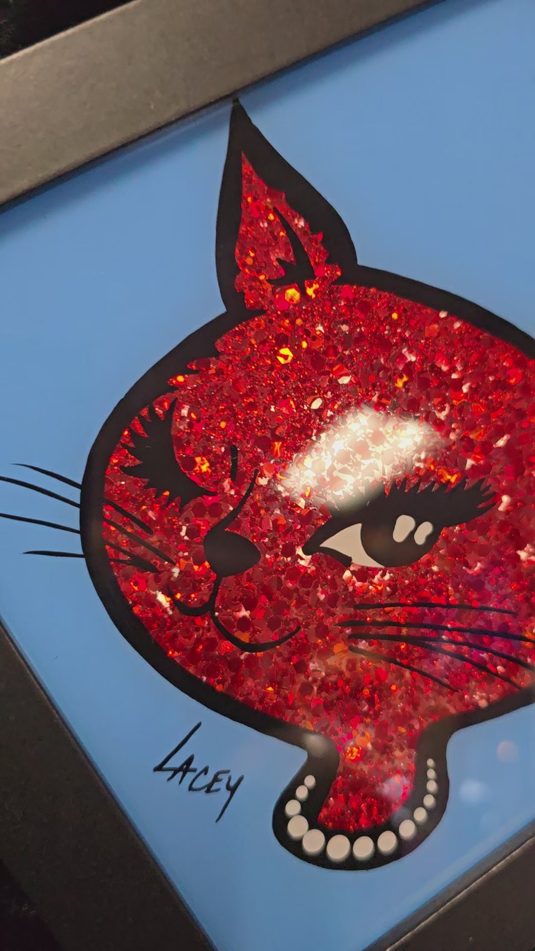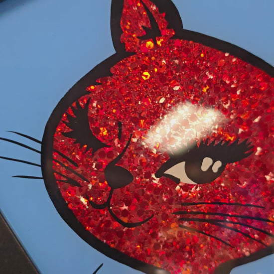 90's Winking Cat "Sticker" Light Blue with Red Glitter