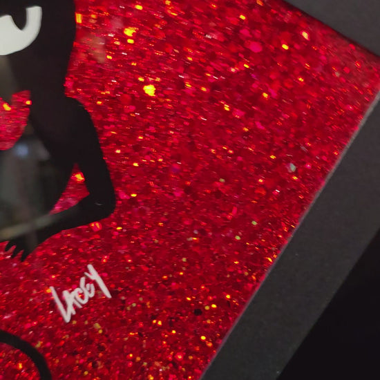 Each piece is hand painted by me, signed and backed with black velvet. Enamel on glass 8x8 black frame.