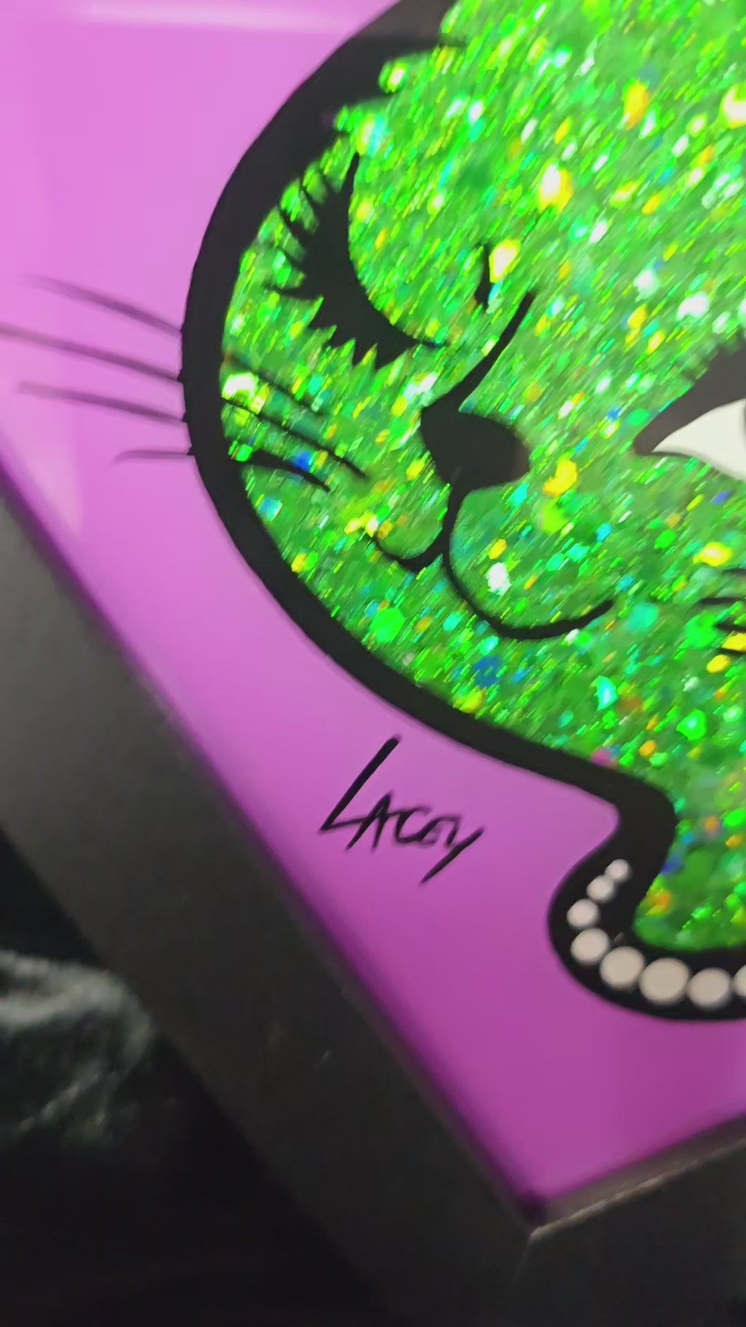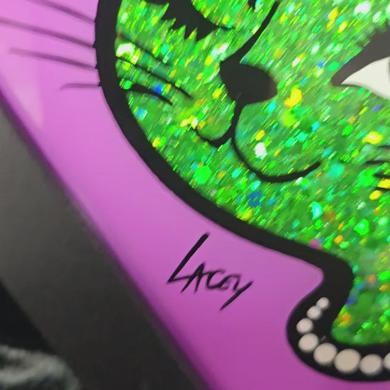 90's Winking Cat "Sticker" Purple with Green Glitter