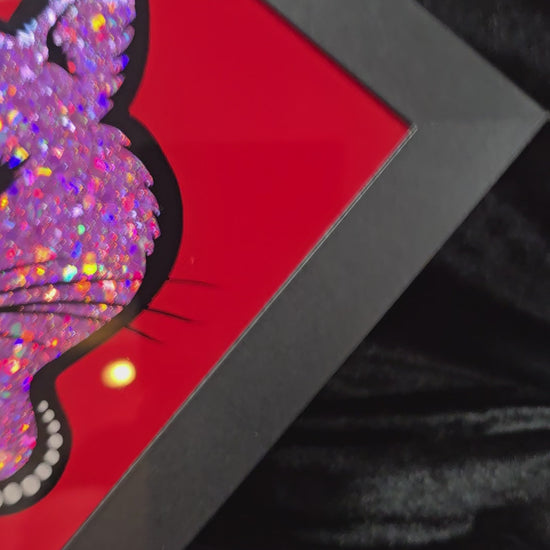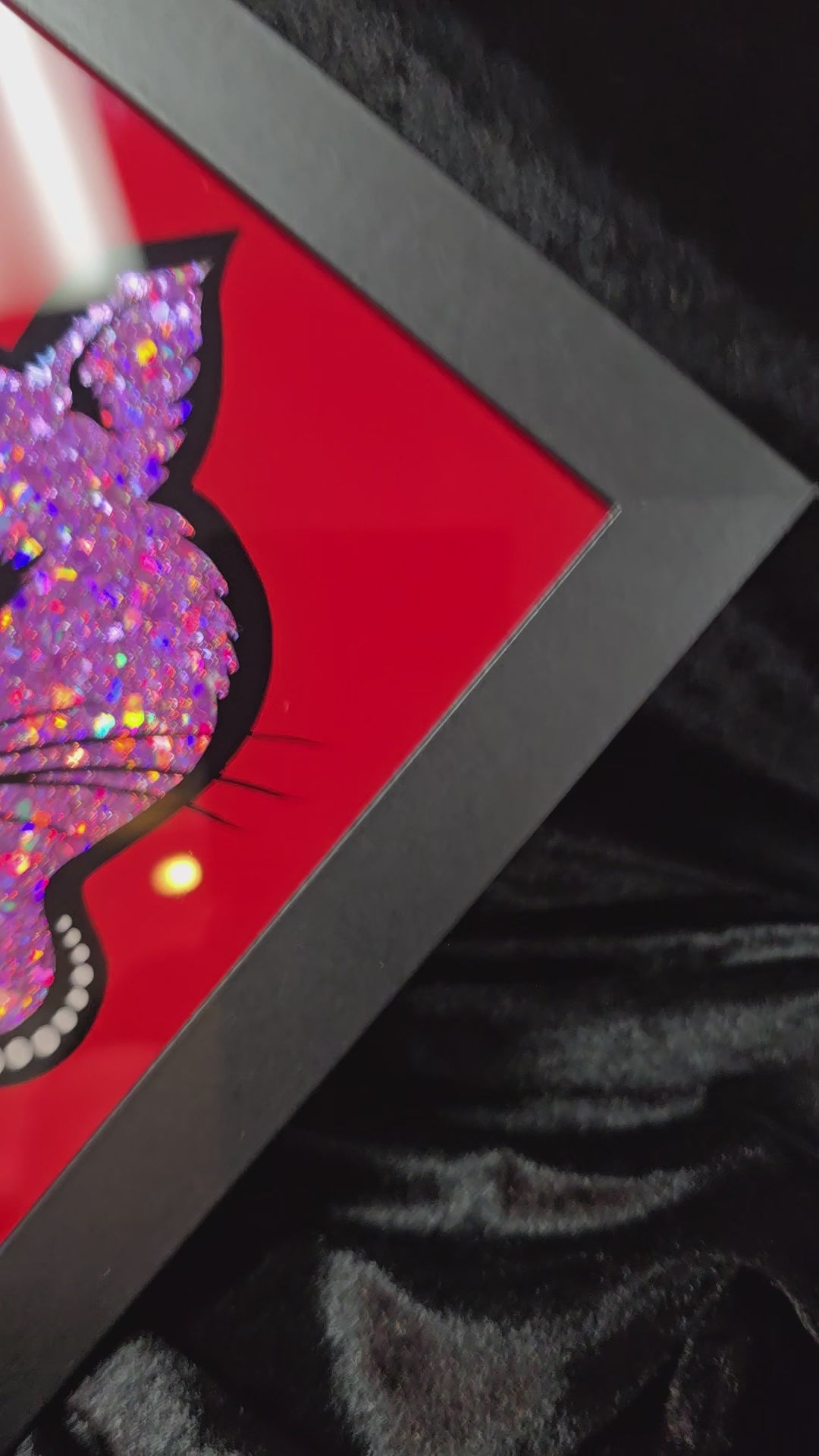 90's Winking Cat "Sticker" Red with Lilac Glitter