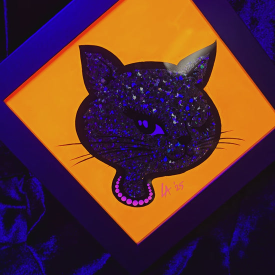 90's Winking Cat "Sticker" UV Reactive Halloween Edition